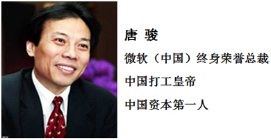 唐骏,是微软历史上*两次获得盖茨杰出奖、*一个获得微软中国区终身荣誉总裁称号的员工,被认为是微软的未来领袖之一。